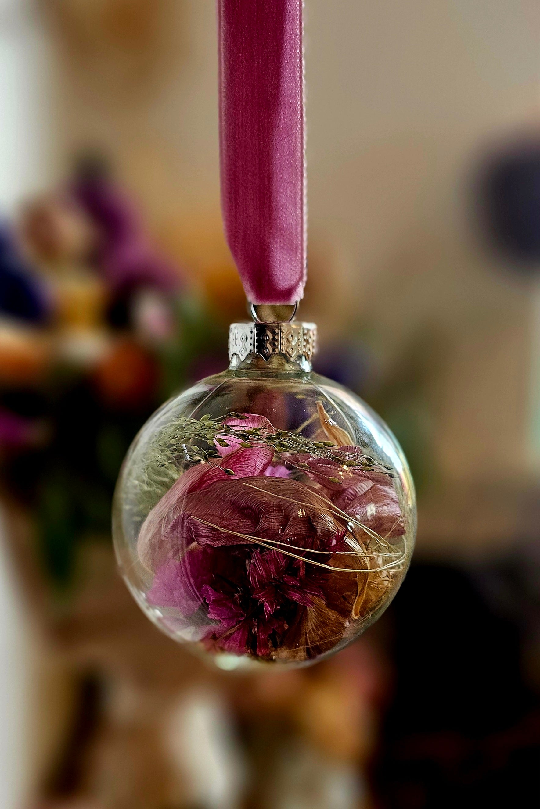 Add a touch of festive charm to your home with my signature glass baubles, each one beautifully hand-filled with a delicate selection of dried flowers in classic Christmas colour themes. Every bauble is unique — lovingly arranged with seasonal details, and sometimes even a tiny frosted pinecone!